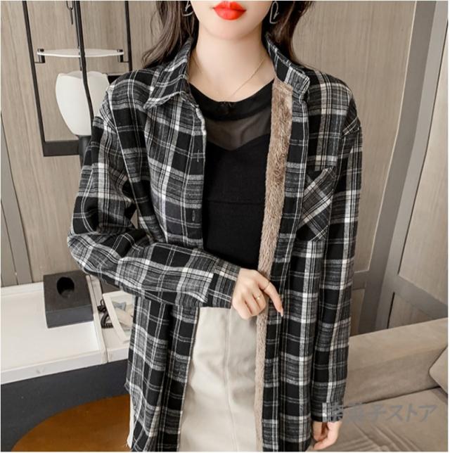 裏起毛シャツ チェク柄 シャツ ミドル丈 裏起毛 防寒 秋冬 長袖 開襟 裏ボア 厚手 保温 トップス カジュアルシャツ 通勤 柔かい