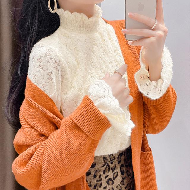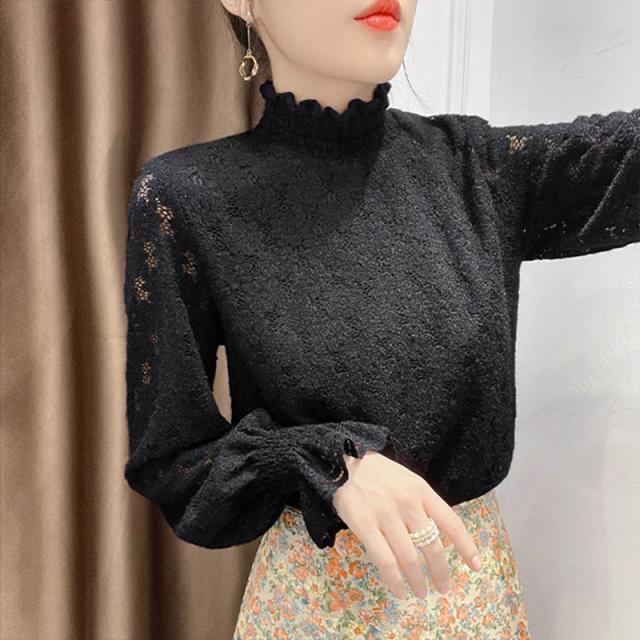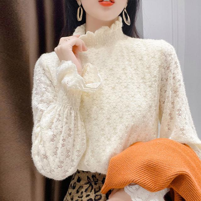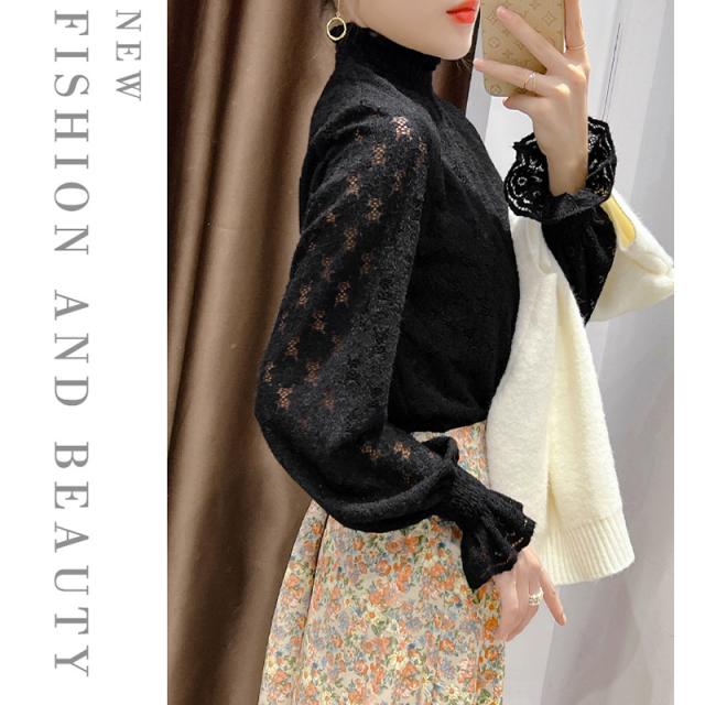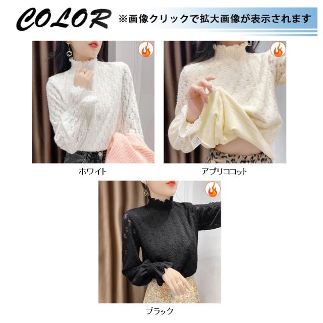 カットソー レディース トップス インナー 肌着 ハイネック 長袖Tシャツ 裏起毛 レース 保温 可愛い カジュアル 無地 一部即納