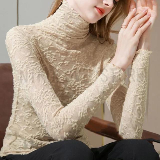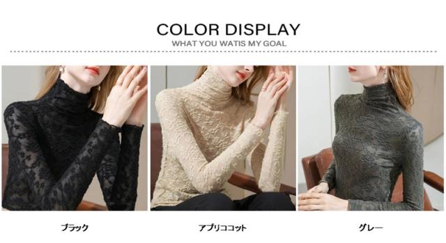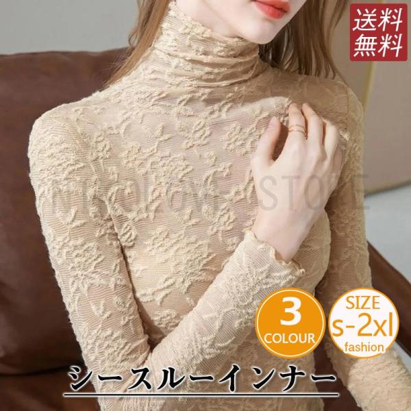 レース チュール トップス レディース ハイネック レースインナー シースルー 長袖 トップス 春夏秋 Tシャツ 重ね着 透け感 刺繍 送料無料