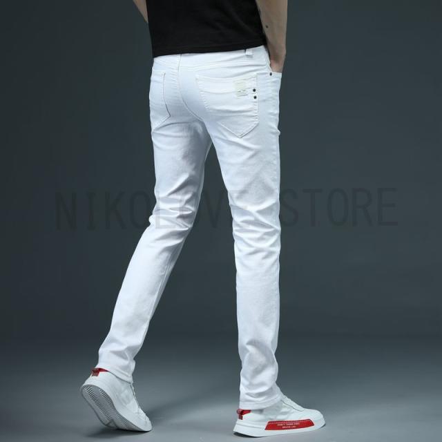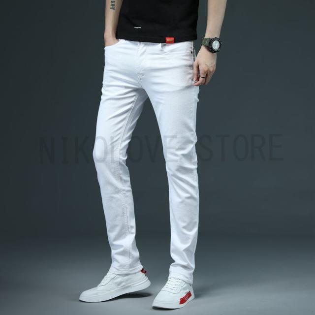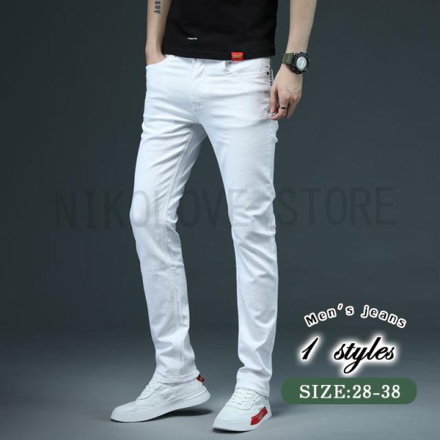 スキニーデニム ホワイトジーンズ メンズ デニムパンツ ジーンズ ストレッチ ビジネス ホワイト 白 ズボン 春 秋 冬 送料無料 通勤 20代30代40代50代 父の日 敬老の日 シンプル 無地 人気 新品追加 セール