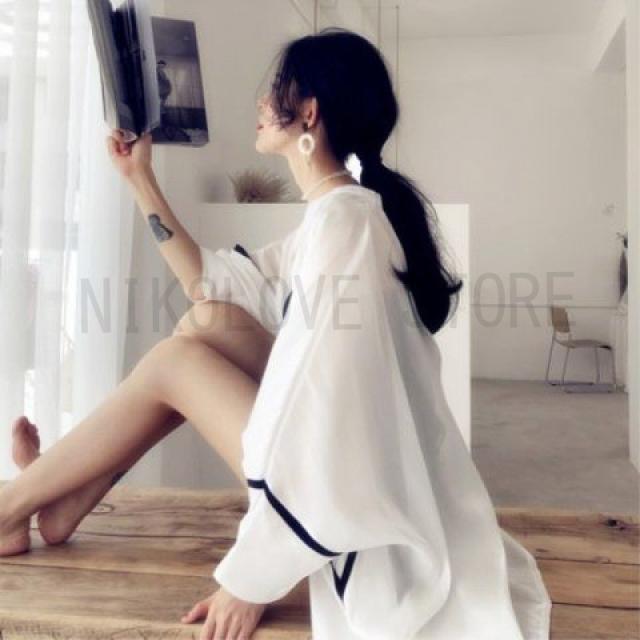 レディース シフォンカーディガン 春 夏 おしゃれ ブラウス UVカット シフォン 長袖ガウン 通勤 パフスリーブ 韓国風 冷房対策 大きいサイズ