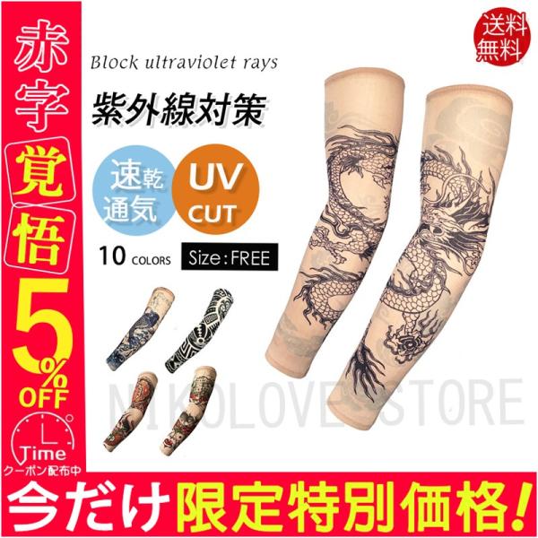アームカバー メンズ 日焼け防止 UVカット 腕カバー ストレッチ 通気性 刺青 入れ墨 UV 運転 伸縮素材 登山 野外 自転車 釣り