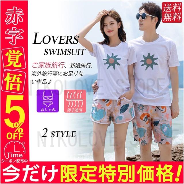 送料無料 カップルペア パンツ ペアルック カップルお揃い お揃え 男女2着 カップル水着 カップル 海水パンツ 花柄 海パン ビーチパンツ 速乾 海