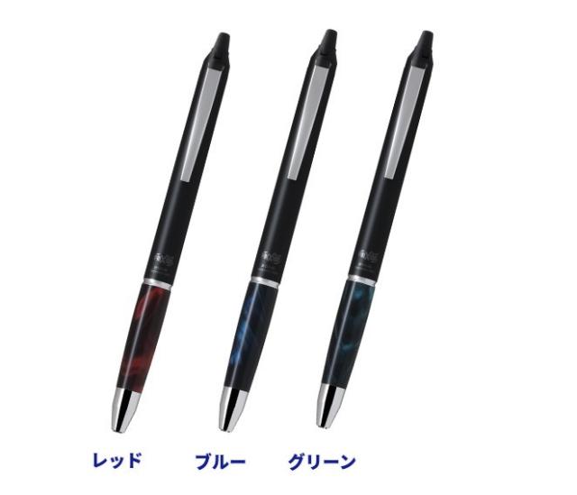 グリップ部分のマーブルカラーとマットブラックがオシャレな「ノック式フリクションボール0.5mm」