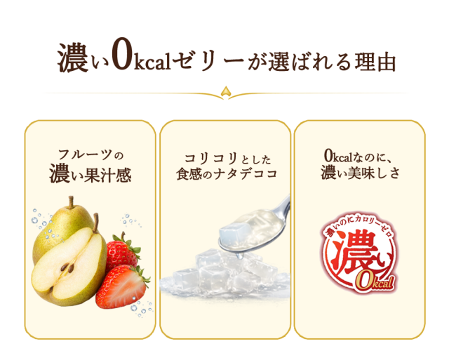 フルーツの美味しい濃さがしっかり味わえる0kcalゼリー