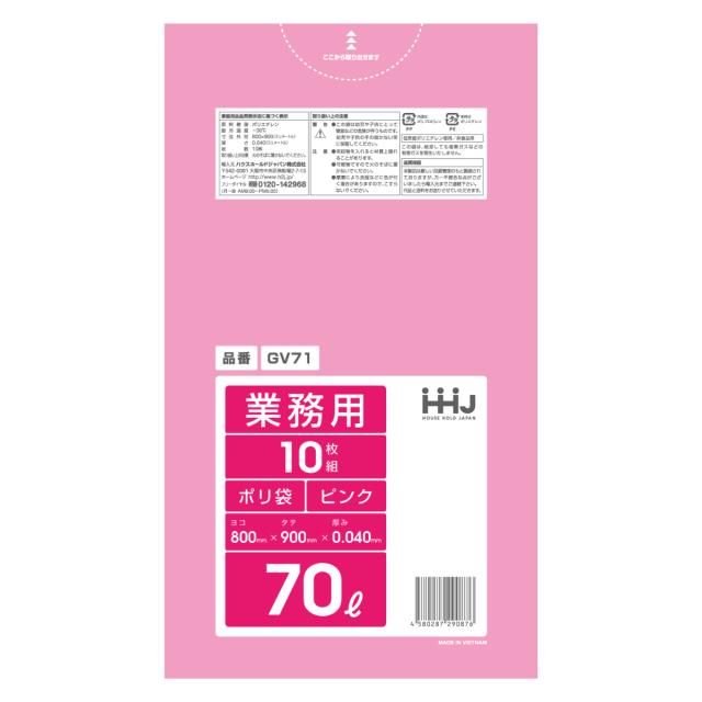 ゴミ袋 70L 90×80cm 厚さ0.04mm 10枚入 ピンク GV71 ( ポリ袋 ごみ袋 70リットル 10枚 ゴミ 袋 ピンク色 縦90cm 横80cm ツルツル ポリエチレン キッチン リビング 消耗品 常備品 色付き )