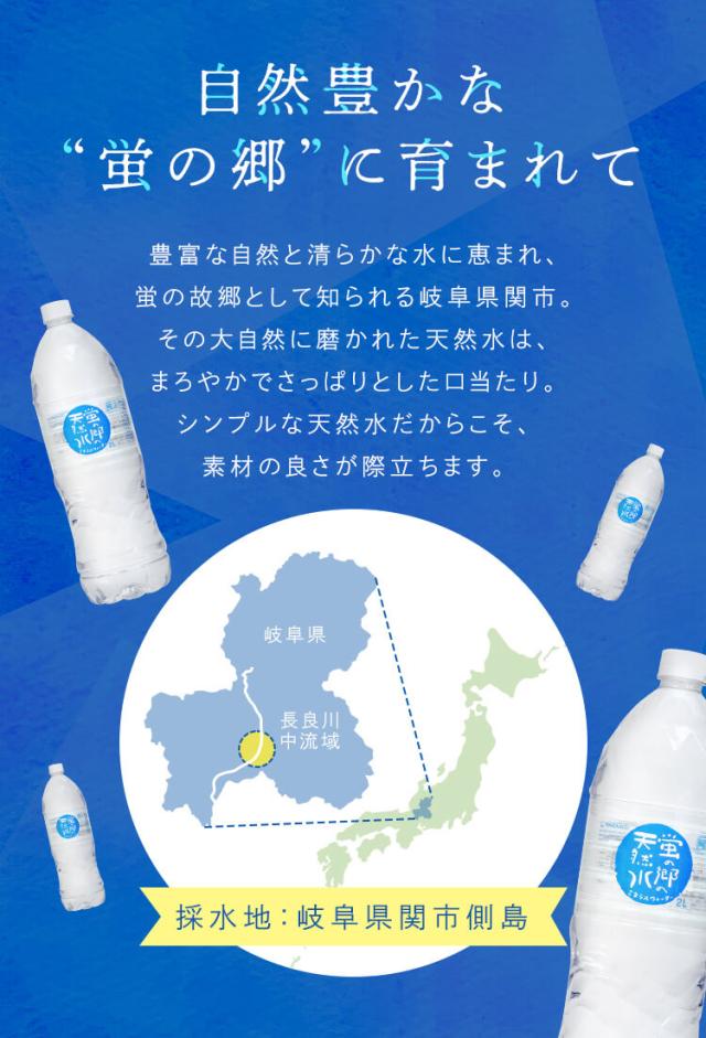 水 2L 6本 天然水 ミネラルウォーター 軟水 蛍の郷の天然水 2L×6本 [代引不可] 水 軟水 2L 6本 岐阜県 名水百選 長良川 天然水 水 ミネラルウォーター 天然水 軟水 保存 備蓄 防災 災害 まとめ買い 水 2L 6本 軟水 天然水 蛍の郷の天然水 人気 送料無料