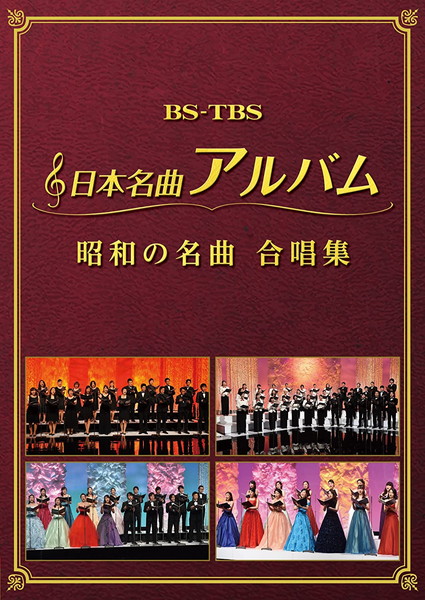 | BS-TBSの人気合唱番組「日本名曲アルバム」のDVDが、遂に発売されます。本作品は、日本有数の実力・歌唱力のある大学の合唱団や合唱団体により、若さあふれる合唱のうたごえを収録し、世代を超えて心を癒す名曲に新たな魅力を生み出した“合唱の力~極上のハーモニー~”を体感する合唱集です。 “この歌があったから生活が豊かになった”といっても過言でない、時代とともにあった昭和の名曲を全41曲収録した、珠玉の作品集です。 <仕様> DVD2枚組 ■発売日:2017.03.29 品番:MHBL-300-301 JAN:4560427432977 発売元:ソニー・ミュージックダイレクト <収録曲> Disc.1 1.丘を越えて(Chor stella) 2.影を慕いて(harmonia ensemble) 3.東京ラプソディ(Jスコラーズ) 4.人生の並木路(レガーロ東京) 5.誰か故郷を想わざる(武蔵野音楽大学室内合唱団) 6.湯の町エレジー(桐朋学園大学TOHO Amici) 7.蘇州夜曲(大阪芸術大学混声合唱団) 8.湖畔の宿(Ensemble OASIS) 9.東京ブギウギ(合唱団お江戸コラリアーず) 10.銀座カンカン娘(フェリス・フラウエンコーア) 11.青い山脈(Jスコラーズ) 12.夜来香(杜の音シンガーズ 13.港が見える丘(フェリス・フラウエンコーア) 14.憧れのハワイ航路(早稲田大学コール・フリューゲル) 15.長崎の鐘(フェリス・フラウエンコーア) 16.高原列車は行く(昭和音楽大学合唱団) 17.月がとっても青いから(桐朋学園大学TOHO Amici) 18.リンゴの唄(Chor stella) 19.悲しき口笛(harmonia ensemble) 20.東京キッド(harmonia ensemble) 21.リンゴ追分(桐朋学園大学TOHO Amici) Disc.2 1.ここに幸あり(武蔵野音楽大学室内合唱団) 2.南国土佐を後にして(昭和音楽大学合唱団) 3.アカシアの雨がやむとき(harmonia ensemble) 4.君恋し(昭和音楽大学合唱団) 5.いつでも夢を(武蔵野音楽大学室内合唱団) 6.下町の太陽(桐朋学園大学TOHO Amici) 7.高校三年生(早稲田大学グリークラブ) 8.学生時代(武蔵野音楽大学室内合唱団) 9.港町十三番地(harmonia ensemble) 10.柔(harmonia ensemble) 11.忘れな草をあなたに(洗足学園音楽大学コールファンタジア) 12.星影のワルツ(Ensemble OASIS) 13.銀色の道(杜の音シンガーズ) 14.希望(フェリス・フラウエンコーア) 15.夜明けのうた(フェリス・フラウエンコーア) 16.今日でお別れ(Ensemble OASIS) 17.黄昏のビギン(東京レディース・シンガーズ) 18.こんにちは赤ちゃん(昭和音楽大学合唱団) 19.見上げてごらん夜の星を(桐朋学園大学TOHO Amici) 20.上を向いて歩こう