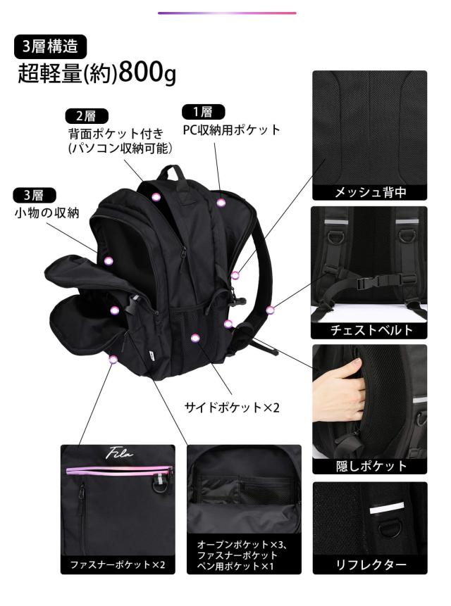 | FILA/フィラ 筆記体 刺繍 PC収納可能 大容量 ビック スクール リュックサック バッグパック fm2398 | |