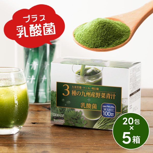 青汁 乳酸菌 粉末タイプ 送料無料 3種の九州産野菜青汁+乳酸菌 3g×20袋×5個/計100袋(005)『OMS』