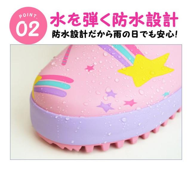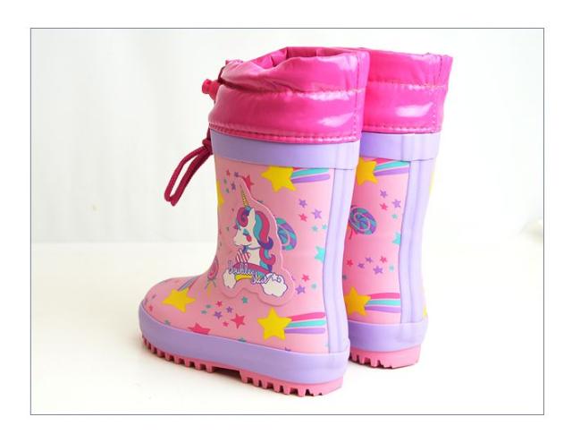 ユニコーン柄がかわいいキッズレインブーツが登場!防水なので、雨の日はもちろん雪の日でも安心!履き口の紐を結ぶことで上からの雨の浸入も防ぎます。インソールは取り外せるので洗っていつも清潔に保てます。雨の日のお出かけも楽しくなるオススメの1足です!