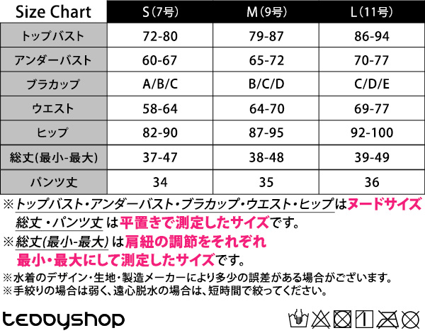 ※トップバスト・アンダーバスト・ブラカップ・ウエスト・ヒップはヌードサイズ、
