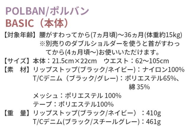 最新型 ポルバン ヒップシート ベーシック POLBAN 抱っこ紐 腰抱き