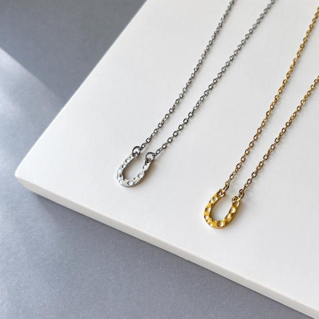 送料無料 エンボス馬蹄ステンレスネックレス ホース ペンダント サージカルステンレス 金属アレルギー対応 レディース つけっぱなし