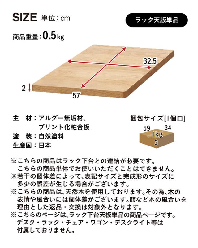 【国産/アルダー無垢材使用】Sign(サイン) 下台用天板 専用オプション ラック 可動棚 サイドラック 本棚 本立て 書棚 ブックラック シェルフ ランドセルラック ツインデスク 書棚 収納棚 おしゃれ 子供部屋 木製 堀田木工所