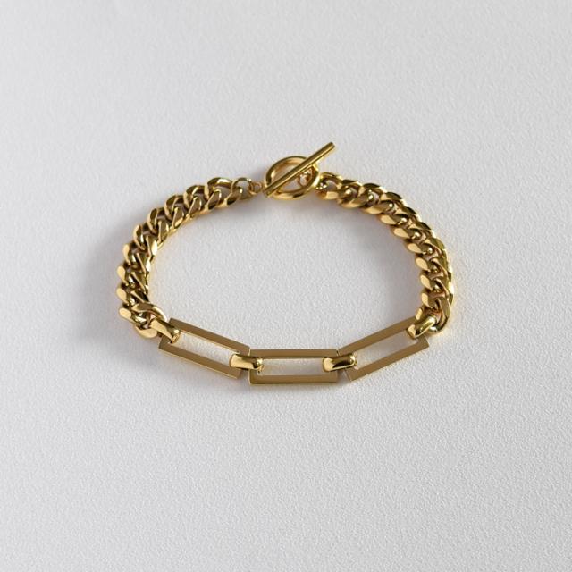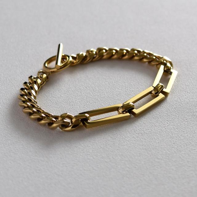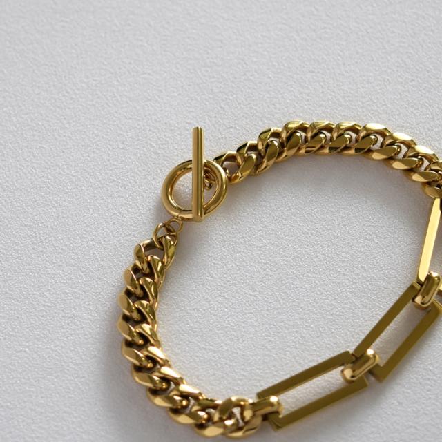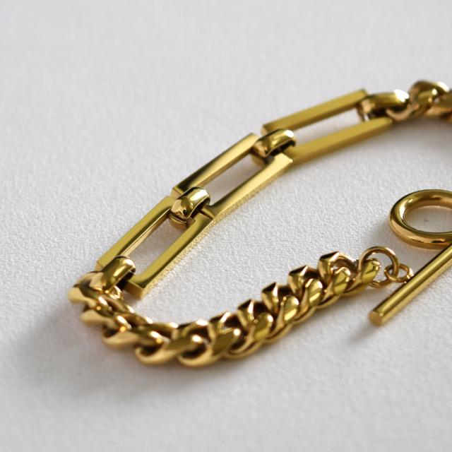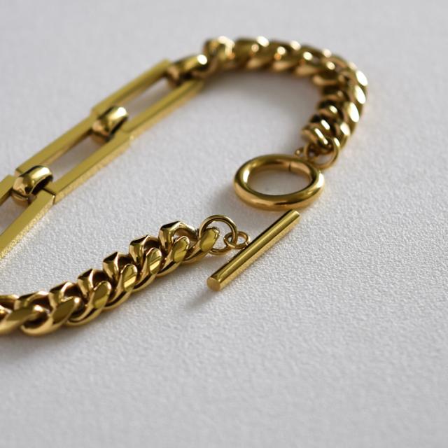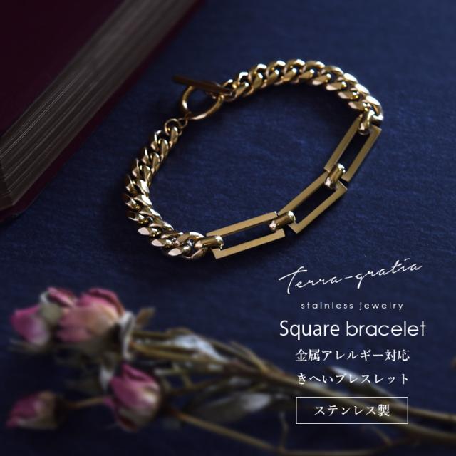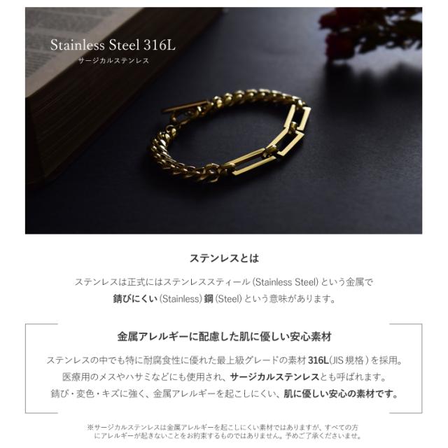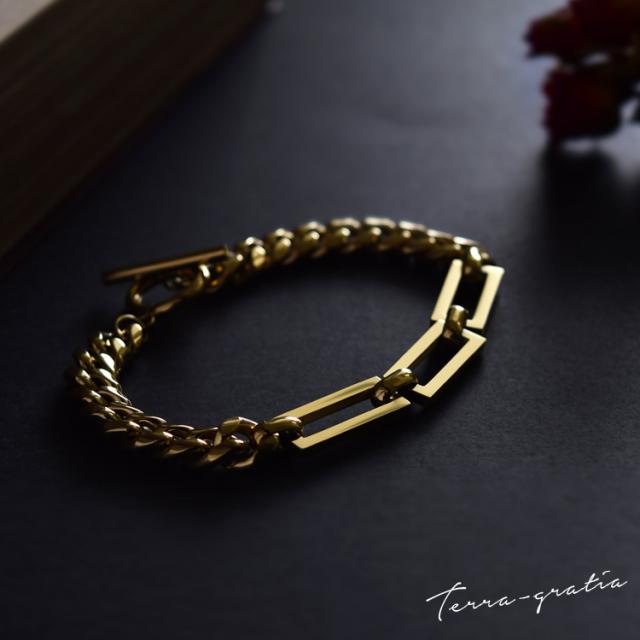 ブレスレット メンズ ステンレス 金属アレルギー対応 サージカルステンレス316L つけっぱなし 喜平 チェーンブレスレット マンテル トグル チェーンブレスレット イエローゴールドカラー テラグラティア Terra-gratia gbss249yg