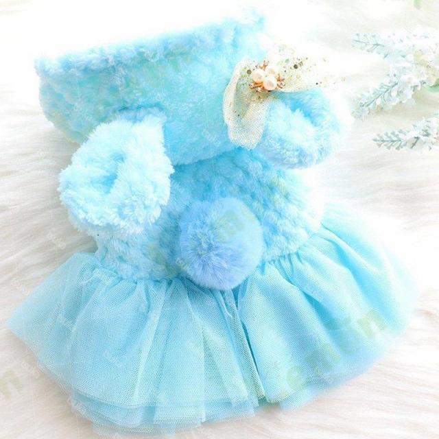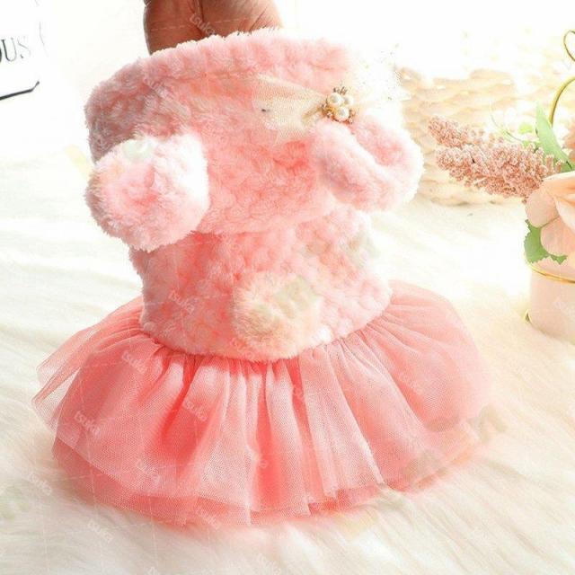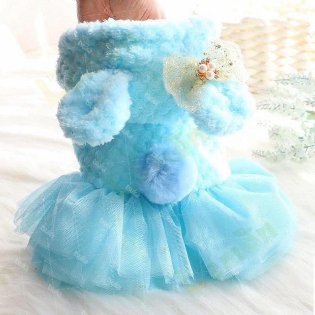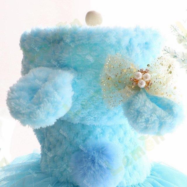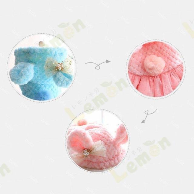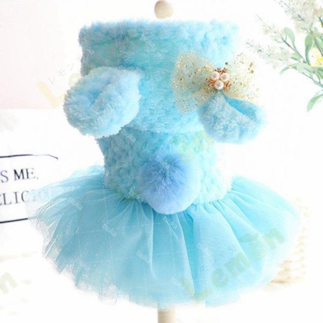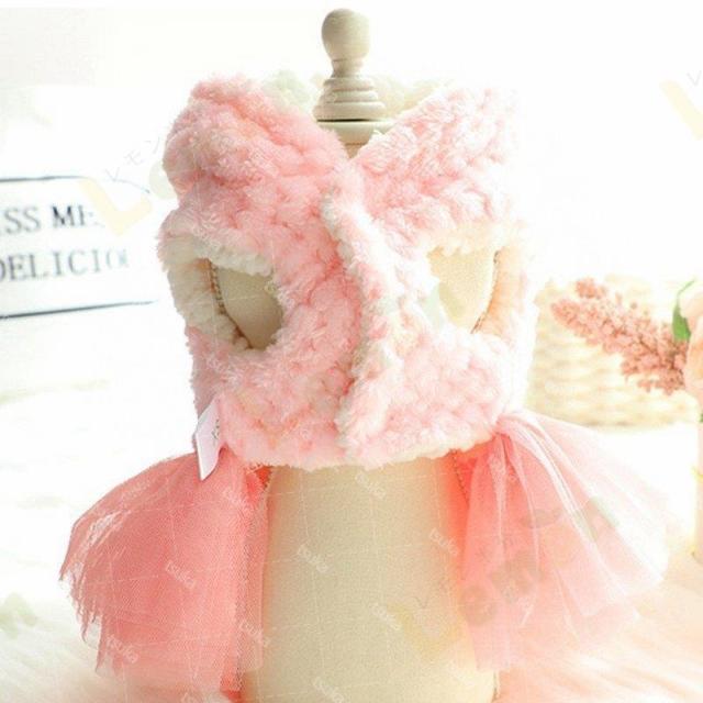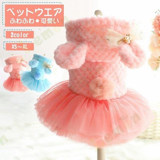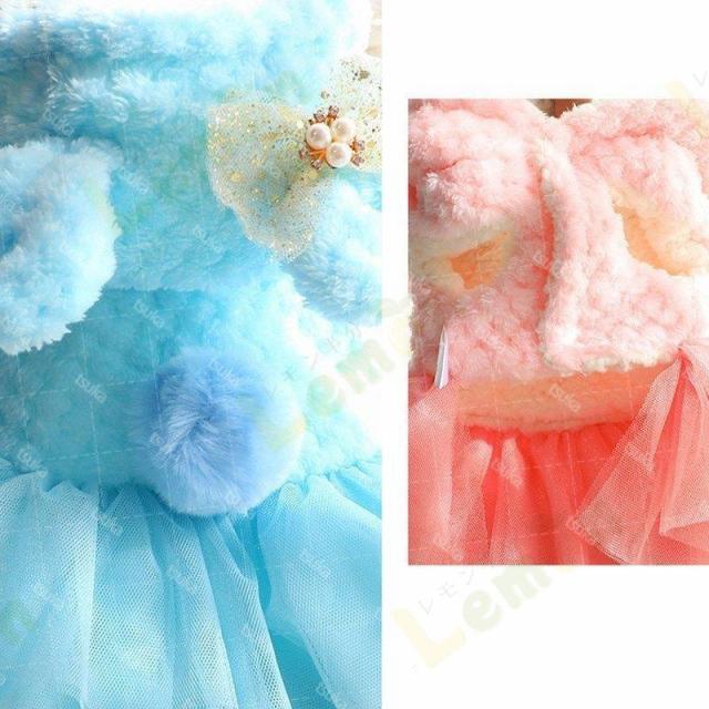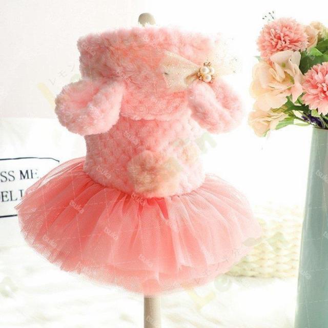 ドックウェア 犬 服 ワンピース 秋冬用 ペット服 可愛い ドレス 裏起毛 ふわふわ パール チュール 暖かい 犬猫用 小型犬 中型犬 女の子 スカート 袖なし