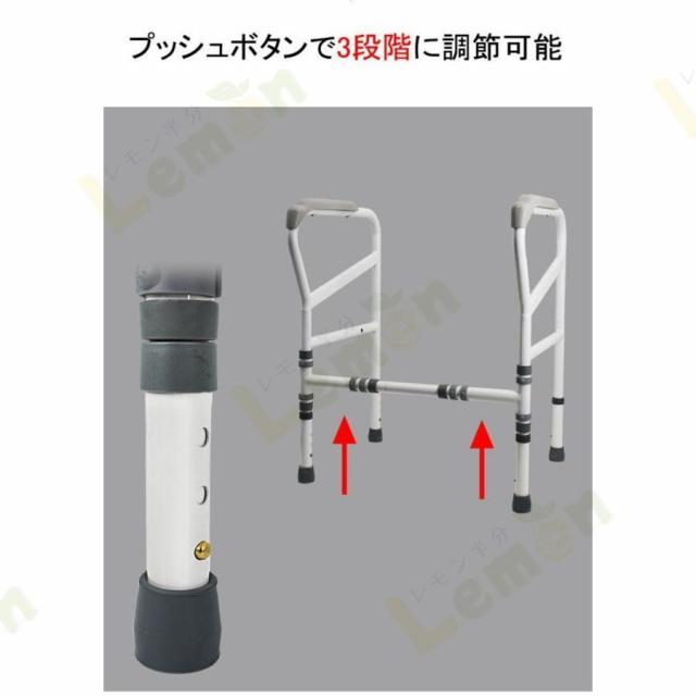 ● 使用者の身体に合わせて、手すりの高さをプッシュボタンで3段階に調節可能。