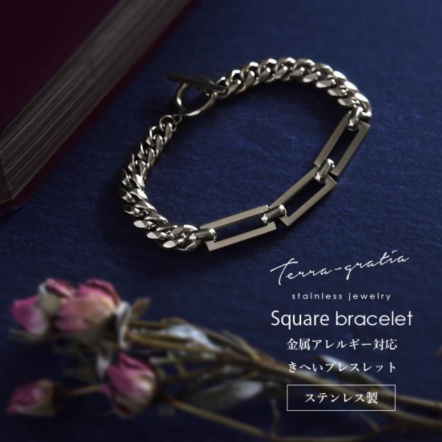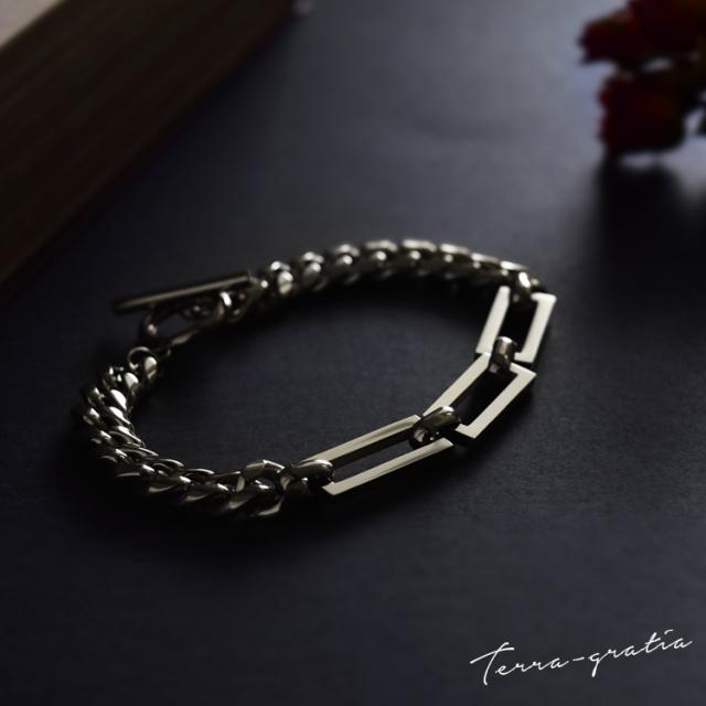 ブレスレット メンズ ステンレス 金属アレルギー対応 サージカルステンレス316L つけっぱなし 喜平 チェーンブレスレット マンテル トグル チェーンブレスレット スティールシルバーカラー テラグラティア Terra-gratia gbss249st