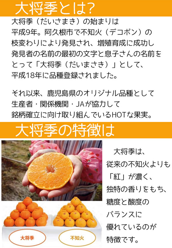 ■ 大将季 デコポン 光糖度センサー検査済 化粧箱【鹿児島県産】