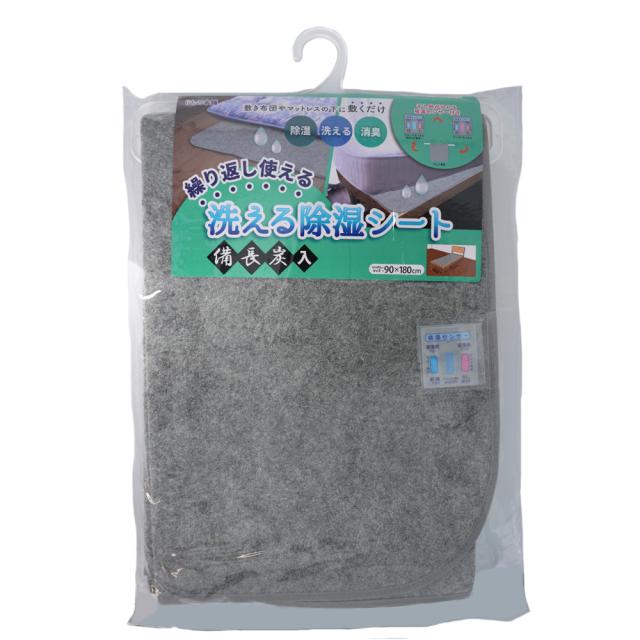 【訳あり】 洗える除湿シート 備長炭入 シングルサイズ 90×180cm グレー 在庫処分特価