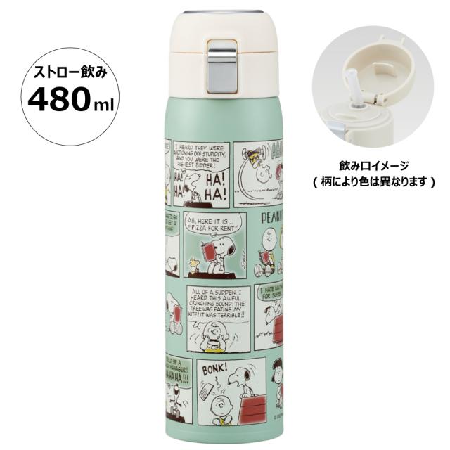 水筒 ワンタッチ ストロー ボトル 480ml ステンレス 保冷 大人 子供 かわいい スケーター STOT5ST スヌーピー SNOOPY ピーナッツ 女性 レディース【保温 おしゃれ ステンレスボトル キッズ ワンプッシュ】