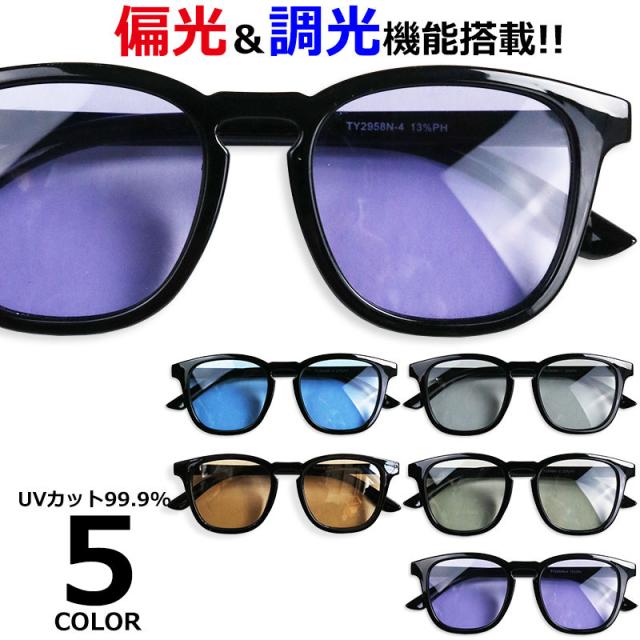 偏光 調光 サングラス メンズ レディース ウェリントン UVカット ボストン 偏光サングラス 調光サングラス めがね 眼鏡 カラーレンズ