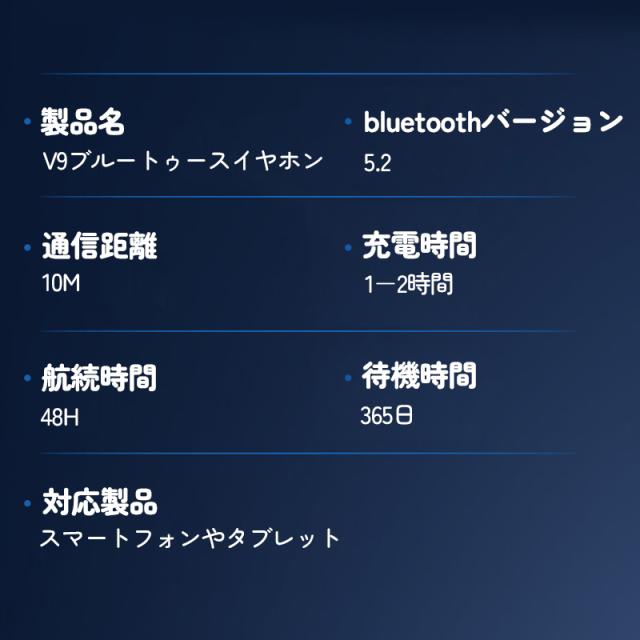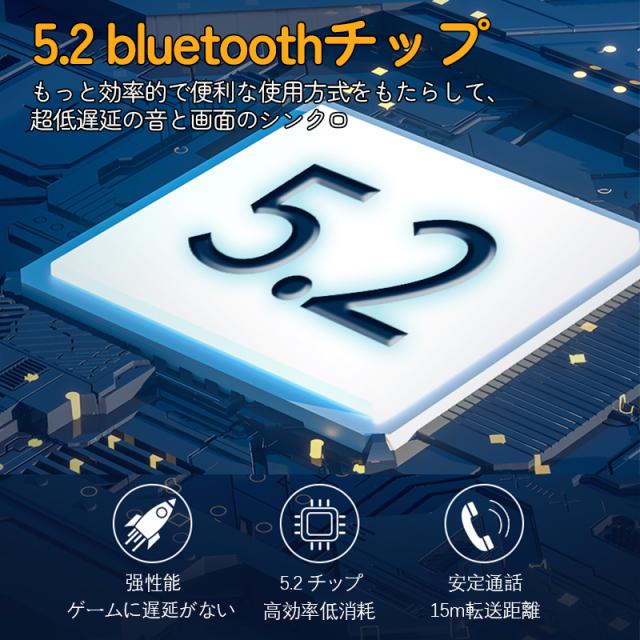 イヤホンはBluetooth 5.2テクノロジーにより最大33ft(10m)の動作範囲に達ち、無障碍作動!急速接続!安定転送出来ます!
