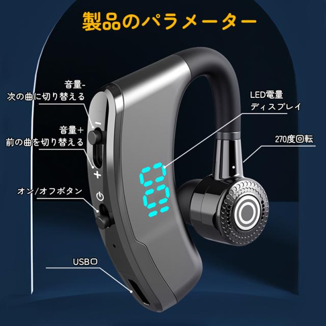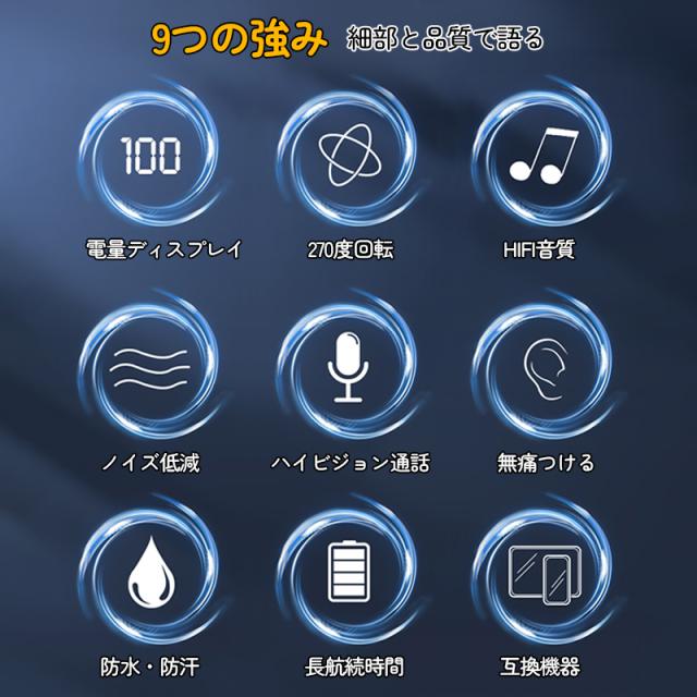 ワイヤレスイヤホン 耳掛け式 防水仕様 ブルートゥース5.2 軽量 左右耳兼用 無痛装着 ハンズフリー通話 最大48h音楽再生 マイク内蔵 iPhone/Android