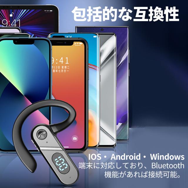 即納 ワイヤレスイヤホン 耳掛け式イヤホン 片耳イヤホン ビジネス向け 左右耳通用 Bluetooth5.2 イヤホン ワイヤレス 片耳 超軽量 ハンズフリー通話 マイク内蔵