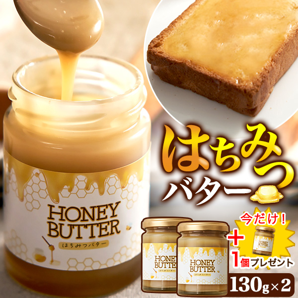 今だけ1個おまけ付き! はちみつバター 2個セット 130g×2 簡単 塗るだけ ハニーバタートースト 美味しい ご褒美 調味料 パンのお供 2瓶 蜂蜜バター おしゃれ 朝食 昼食 おやつ ブランチ パンケーキ 自宅 自分用 贈答 贈物 プレゼント グルメ ギフト 蜂蜜 はちみつ バター