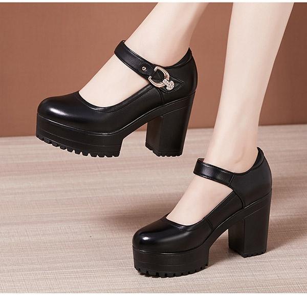 パンプス 太いヒール 小さいサイズ ヒール6cm/8cm/10cm ストラップ ハイヒール レディース 大きいサイズ 2colors ブラック ホワイト