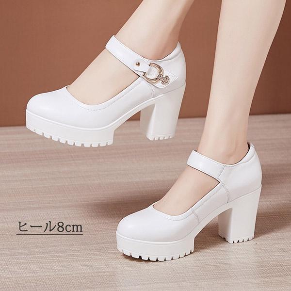 パンプス 太いヒール 小さいサイズ ヒール6cm/8cm/10cm ストラップ ハイヒール レディース 大きいサイズ 2colors ブラック ホワイト 結婚式 ピアノ発表会 可愛い パーティー シューズ 靴 発表会 演奏会 演出 女の子 21.0〜26.5 di141g5g5la