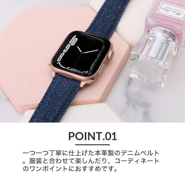 アップルウォッチ バンド デニム レザーベルト 本革 革ベルト Apple Watch アップル ウォッチ 替えベルト ベルト 交換用 レザー スリム タイプ レディース シリーズ 7 SE 6 5 4 3 2 1 対応 38 40 41 42 44 45 mm ミリ 人気 ブランド おしゃれ 可愛い かわいい 細身 細い