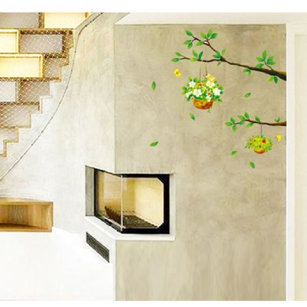 | 小枝と花かご 蝶々も 特大 3D ウォールステッカー 剥がせる お洒落 壁紙 デコ シール 防水 DIY 壁 床 家具 インテリア 森 葉っぱ | ||||||||||