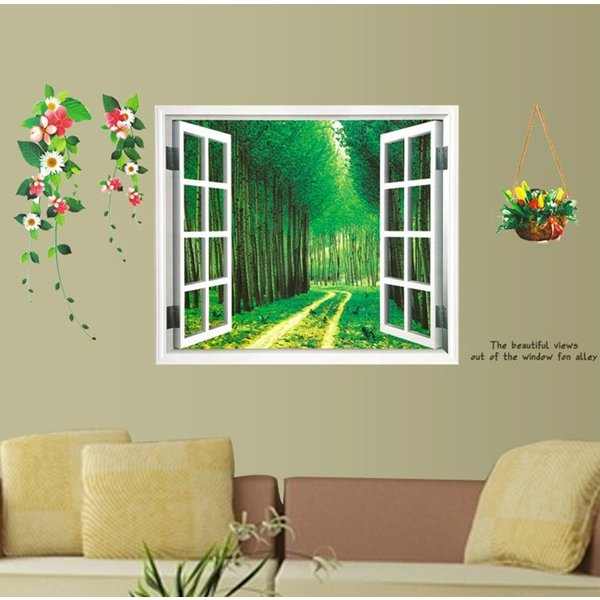 癒しの3D窓 ウォールステッカー 南国 森の二本道 騙し絵 トリックアート はがせる 壁紙 シール 防水 DIY 壁 インテリア