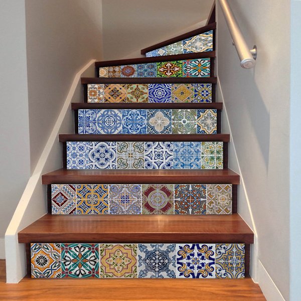 モロッコタイル風 階段用 ステッカー サイズ18X100cm 6枚セット ウォールステッカー 装飾 剥がせる 可愛い カンタン DIY 壁紙シール FS003