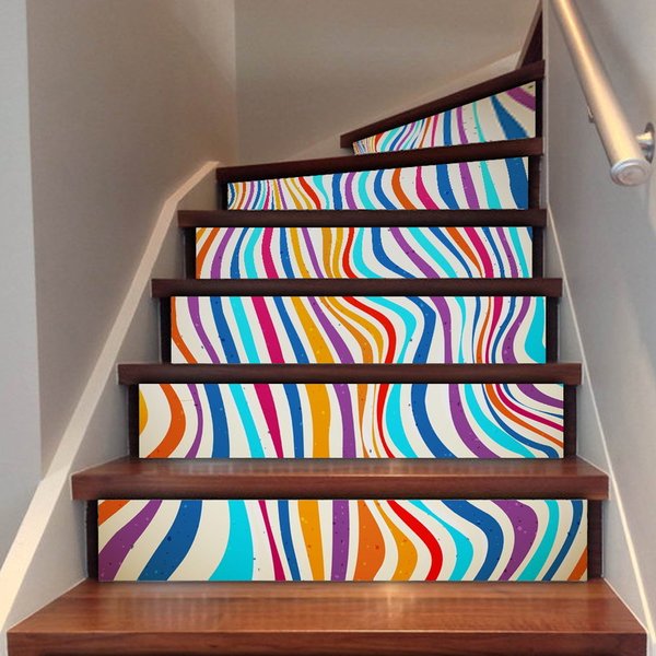 ストライプ 階段用 ステッカー サイズ18X100cm 6枚セット ウォールステッカー 装飾 剥がせる 可愛い カンタン DIY 壁紙シール FS001