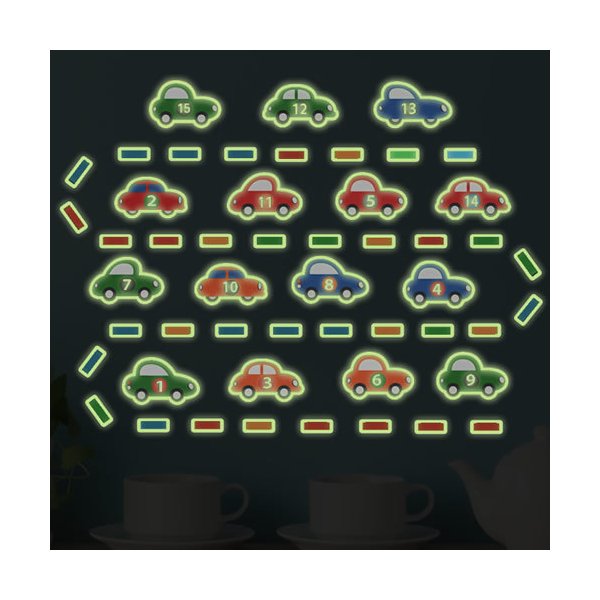 暗闇で光る☆ 走る! 車セット 蓄光ステッカー インテリア ステッカー カー ドライブ 夜光 蛍光 シール