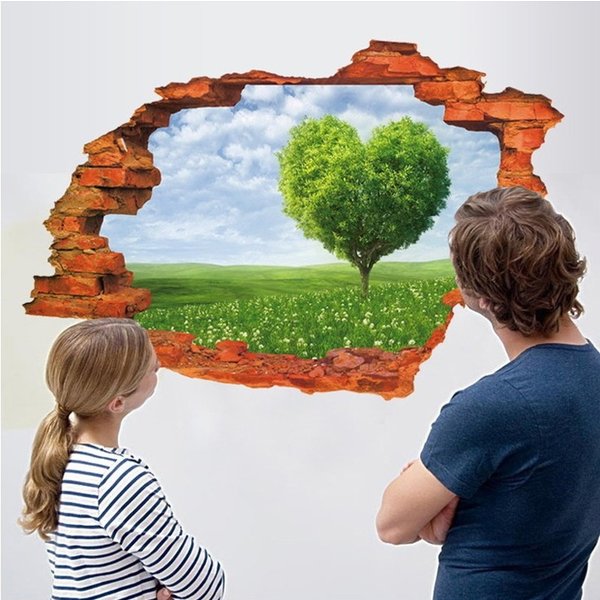 3D ウォールステッカー ハートの木 草原 騙し絵 トリックアート はがせる 壁紙 シール 防水 DIY 壁 床 家具 インテリア 天井