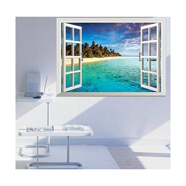 ウォールステッカー 窓 風景 シール 浜辺 海 ビーチ お風呂 インテリアシール 子供部屋 床 3d 景色 だまし絵 壁