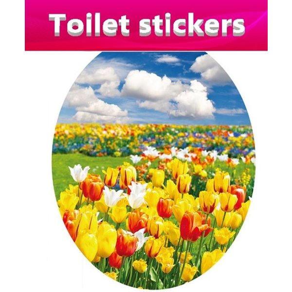 3D ウォールステッカー トイレ チューリップ畑 騙し絵 トリックアート はがせる 壁紙 シール 防水 DIY 壁 床 家具 インテリア 天井