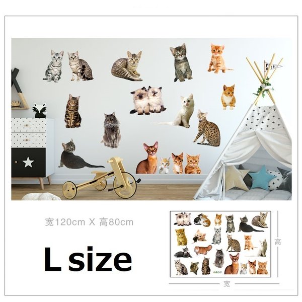 超リアル【C252 にゃんこ 猫ステッカー L】ウォールステッカー 防水 賃貸 壁画アート 壁飾り はがせるシール 床 壁