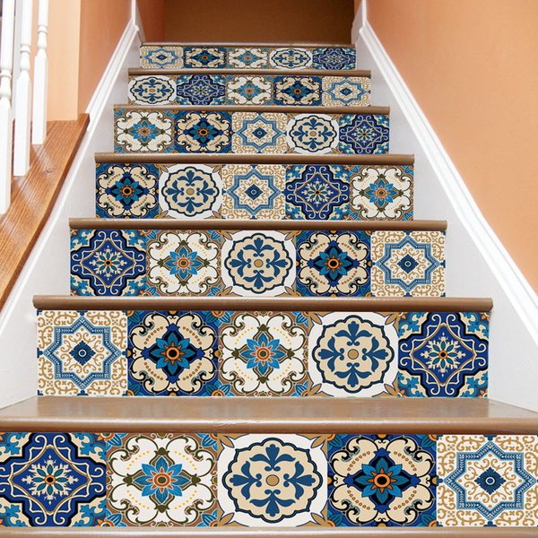 モロッコタイル風 階段用 ステッカー サイズ18X100cm 6枚セット ウォールステッカー 装飾 剥がせる 可愛い カンタン DIY 壁紙シール FS066