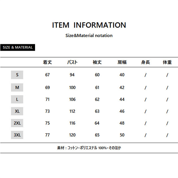 ※基本的に、XL・LL・2Lのサイズはすべて同じサイズです。
