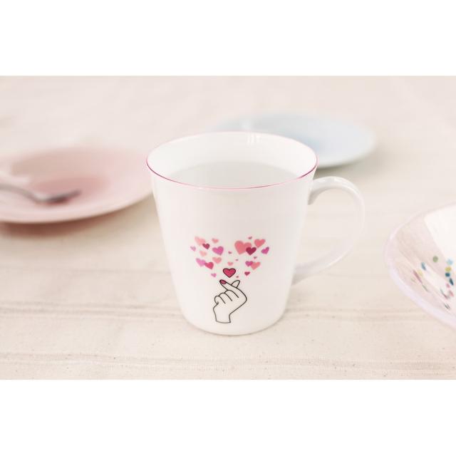 カップふちのピンクのラインは、職人の手描きで一つ一つ表情が違い温かみがあります。