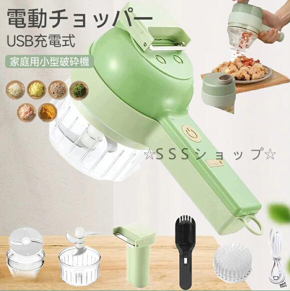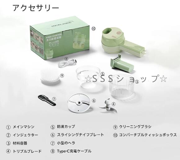 電動スライサー スライサー 小型 ベジタブルカッター 電動 みじん切 カット セーフティープッシュスライサー スライス 充電式 多機能