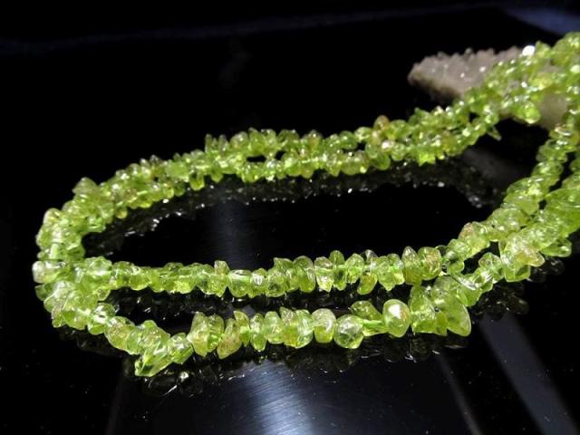 ペリドット さざれ 約2mm-7mm 一連 約38cm-40cm ツヤツヤ透明美品 連長さ短めタイプ 8月の誕生石 パワーストーン 天然石