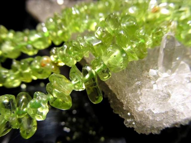 8月の誕生石、獅子座の象徴でもあるペリドット! その独自の鮮やかなグリーンと宝石としても有名なことから人気の高い天然石です。 火山近くで多く産出する鉱物で、隕石の中にも上質な結晶が含まれていることもある特殊な鉱物です。 ペリドットは常に人気があり、天然石好きなら一つは持っておきたいメジャーな天然石です♪ さざれ連は丸珠ビーズに比べ安価なので、気軽に取り入れられますよ♪ ネックレスやブレスレットなどのアクセサリー作りにもってこいです! 【意味合い云われ・伝承等】 ペリドットは「太陽の石」とも呼ばれ、ネガティブなエネルギーを取り除き、ポジティブなエネルギーをもたらしてくれると言われています。 |