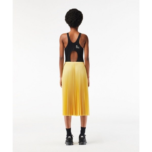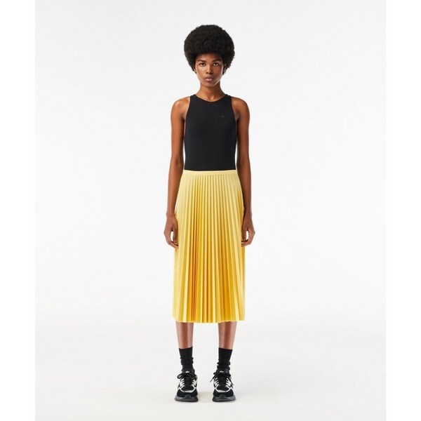 細かなプリーツを全面にあしらったテニスのDNAを感じるオーセンティックなスカート。ボディには取り扱いのしやすいポリエステル素材を使用。ウエストにはブランドネームロゴをジャカードしたゴムバンドを配し、スポーティーなニュアンスもキープしたラコステらしい1着です。